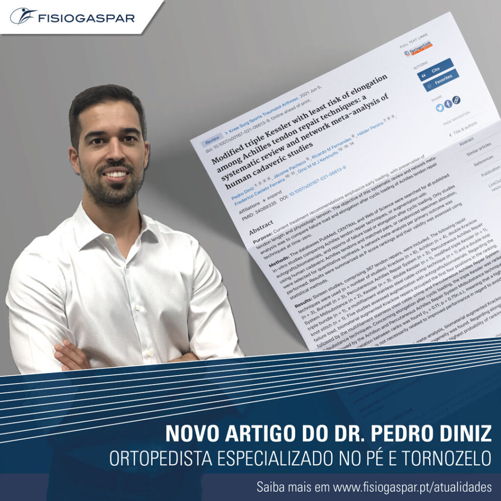 [vc_row type=”in_container” full_screen_row_position=”middle” scene_position=”center” text_color=”dark” text_align=”left” overlay_strength=”0.3″ shape_divider_position=”bottom” bg_image_animation=”none”][vc_column column_padding=”no-extra-padding” column_padding_position=”all” background_color_opacity=”1″ background_hover_color_opacity=”1″ column_link_target=”_self” column_shadow=”none” column_border_radius=”none” width=”1/1″ tablet_width_inherit=”default” tablet_text_alignment=”default” phone_text_alignment=”default” column_border_width=”none” column_border_style=”solid” bg_image_animation=”none”][vc_column_text]Hoje partilhamos consigo um artigo de co-autoria do Dr. Pedro Diniz, ortopedista especializado no pé e tornozelo, publicada na Knee Surg Sports Traumatol Arthrosc, intitulado “Modified triple Kessler with least risk of elongation among Achilles tendon repair techniques: a systematic review and network meta-analysis of human cadaveric studies”.