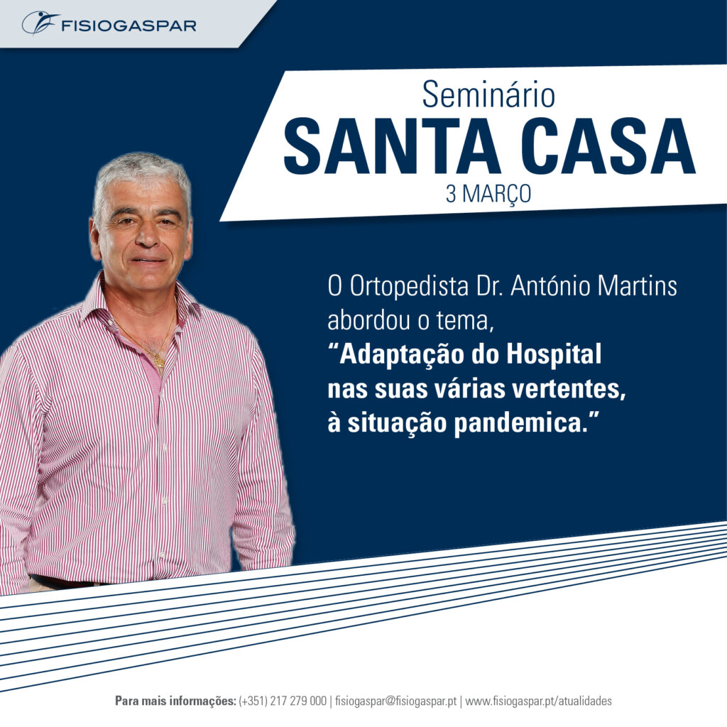 [vc_row type=”in_container” full_screen_row_position=”middle” scene_position=”center” text_color=”dark” text_align=”left” overlay_strength=”0.3″ shape_divider_position=”bottom” bg_image_animation=”none”][vc_column column_padding=”no-extra-padding” column_padding_position=”all” background_color_opacity=”1″ background_hover_color_opacity=”1″ column_link_target=”_self” column_shadow=”none” column_border_radius=”none” width=”1/1″ tablet_width_inherit=”default” tablet_text_alignment=”default” phone_text_alignment=”default” column_border_width=”none” column_border_style=”solid” bg_image_animation=”none”][vc_column_text]O Dr. António Martins Ortopedista interno da Fisiogaspar, especialista na Cirurgia Artroscópica e Reconstrutiva do Joelho, detendo um currículo ímpar no acompanhamento de atletas de alta competição, marcou presença num seminário organizado pela Santa Casa sob o tema “Adaptação do Hospital nas suas várias vertentes, à situação pandémica”.