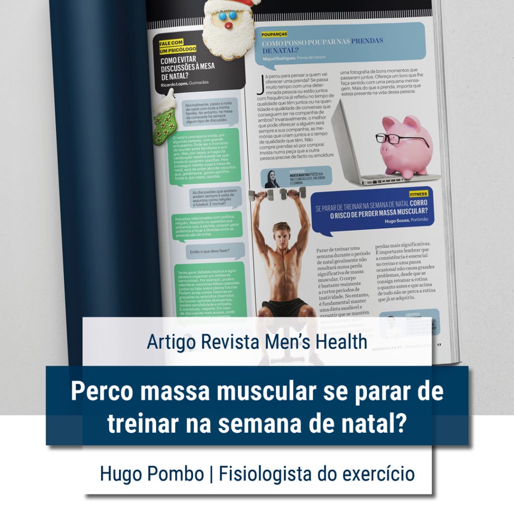 O fisiologia do exercício Hugo Pombo, esclarece a questão sobre se parar de treinar na semana de natal corre o risco de perder massa muscular, à revista Men’s Health.