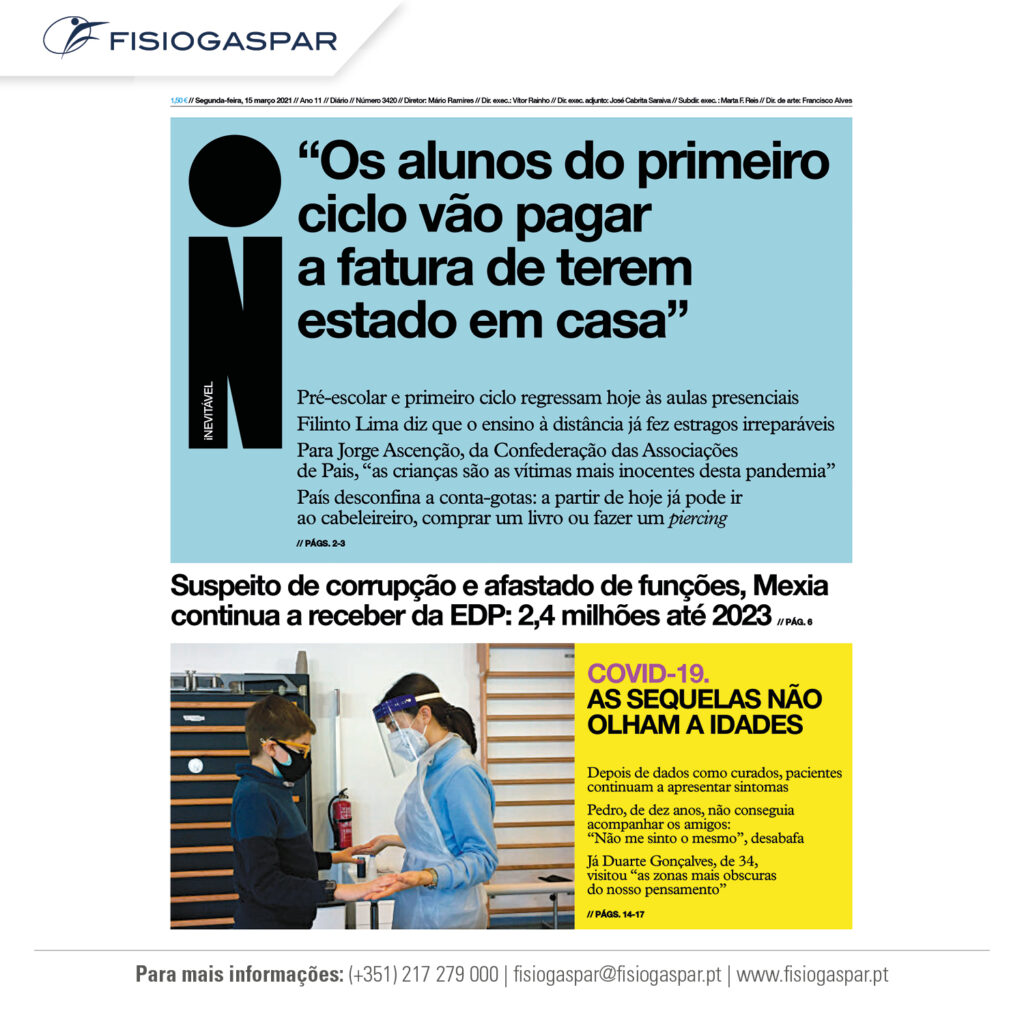 [vc_row type=”in_container” full_screen_row_position=”middle” column_margin=”default” column_direction=”default” column_direction_tablet=”default” column_direction_phone=”default” scene_position=”center” text_color=”dark” text_align=”left” row_border_radius=”none” row_border_radius_applies=”bg” overflow=”visible” overlay_strength=”0.3″ gradient_direction=”left_to_right” shape_divider_position=”bottom” bg_image_animation=”none”][vc_column column_padding=”no-extra-padding” column_padding_tablet=”inherit” column_padding_phone=”inherit” column_padding_position=”all” column_element_direction_desktop=”default” column_element_spacing=”default” desktop_text_alignment=”default” tablet_text_alignment=”default” phone_text_alignment=”default” background_color_opacity=”1″ background_hover_color_opacity=”1″ column_backdrop_filter=”none” column_shadow=”none” column_border_radius=”none” column_link_target=”_self” column_position=”default” gradient_direction=”left_to_right” overlay_strength=”0.3″ width=”1/1″ tablet_width_inherit=”default” animation_type=”default” bg_image_animation=”none” border_type=”simple” column_border_width=”none” column_border_style=”solid”][vc_column_text]O Jornal “i” publicou hoje uma reportagem sobre o “Sindrome pós-covid-19” com destaque de capa à Fisiogaspar e aos testemunhos dos nossos pacientes Pedro Pinto (10 anos) em recuperação, e Chirague Bhanji (43 anos) já recuperado após reabilitação na Fisiogaspar.